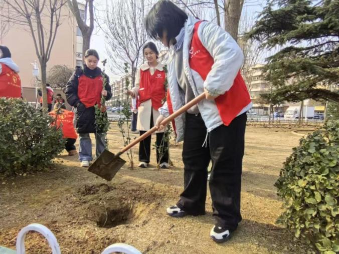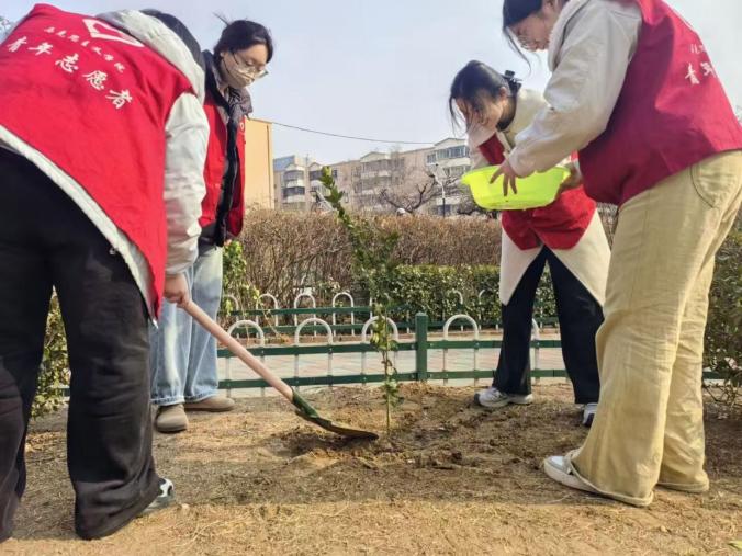 春风送暖,万物勃发,正是植树添绿、践行生态文明的大好时节。为深入贯彻习近平生态文明思想,落实立德树人根本任务,深化校社共建、校社联动机制,引导青年学子走出校园、扎根基层,在劳动实践中厚植生态环保意识、锤炼责任担当、传递青春温情,2026年3月12日,唐山师范学院马克思主义学院青年志愿者协会联合中国特色社会主义理论社团,走进路北区幸福花园社区,开展“植树添新景,青春献真情”志愿服务活动,以实际行动为社区增绿添彩,以青春担当践行绿色发展理念。