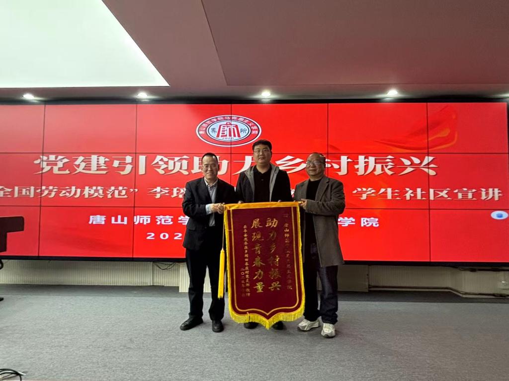 2025年10月21日,马克思主义学院党总支书记刘肇民和执行院长宋晓敏共同接受了阚田各庄村党支部李瑶书记赠送的锦旗“助力乡村振兴 展现青春力量”并为李瑶书记颁发了马克思主义学院校外实践指导教师聘书。