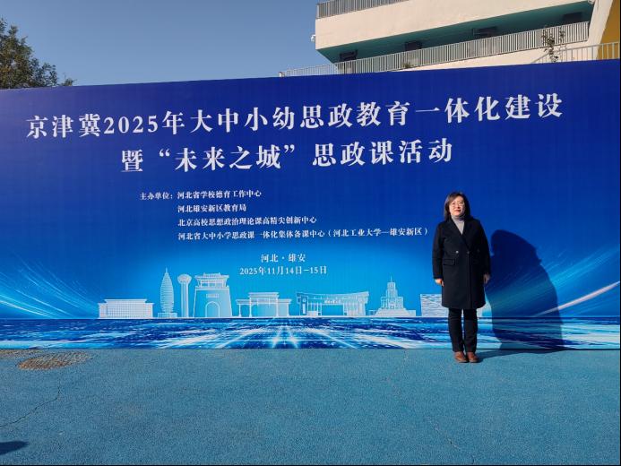 为深入学习贯彻党的二十届四中全会精神,推动全会精神有机融入大中小学思政课教学全过程,落实河北省大中小学思政课一体化建设要求,11月14日至15日,马克思主义学院执行院长宋晓敏、副院长赵婉华作为河北省大中小学思政课一体化集体备课中心成员单位代表,赴河北雄安新区参加“党的二十届四中全会精神进课堂”暨河北省大中小学同备一堂“未来之城”思政课活动。