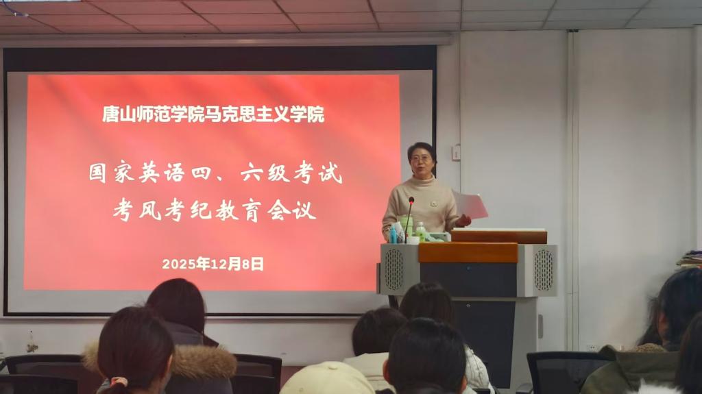 在2025年下半年全国大学英语四六级考试(12月13日)来临之际,为进一步端正考风、严肃考纪,营造公平有序的考试环境,切实提升考生遵纪守法意识,强化诚信应考观念,马克思主义学院于2025年12月8日在502会议室开展四六级考试考风考纪教育会。