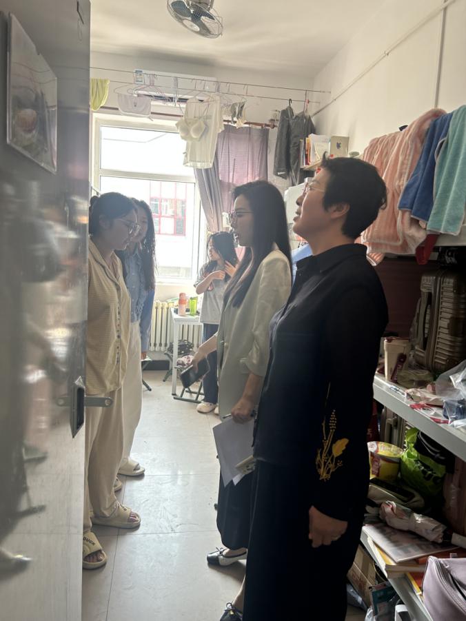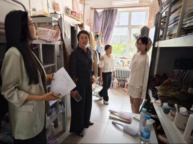 为确保国庆假期安全,加强学生宿舍安全管理,营造安全、整洁、和谐的生活氛围,2025年9月30日上午,马克思主义学院党总支副书记董怀晶、学工办主任齐艳梅,团总支书记李思思深入马克思主义学院学生宿舍开展了安全检查并探望留校学生。